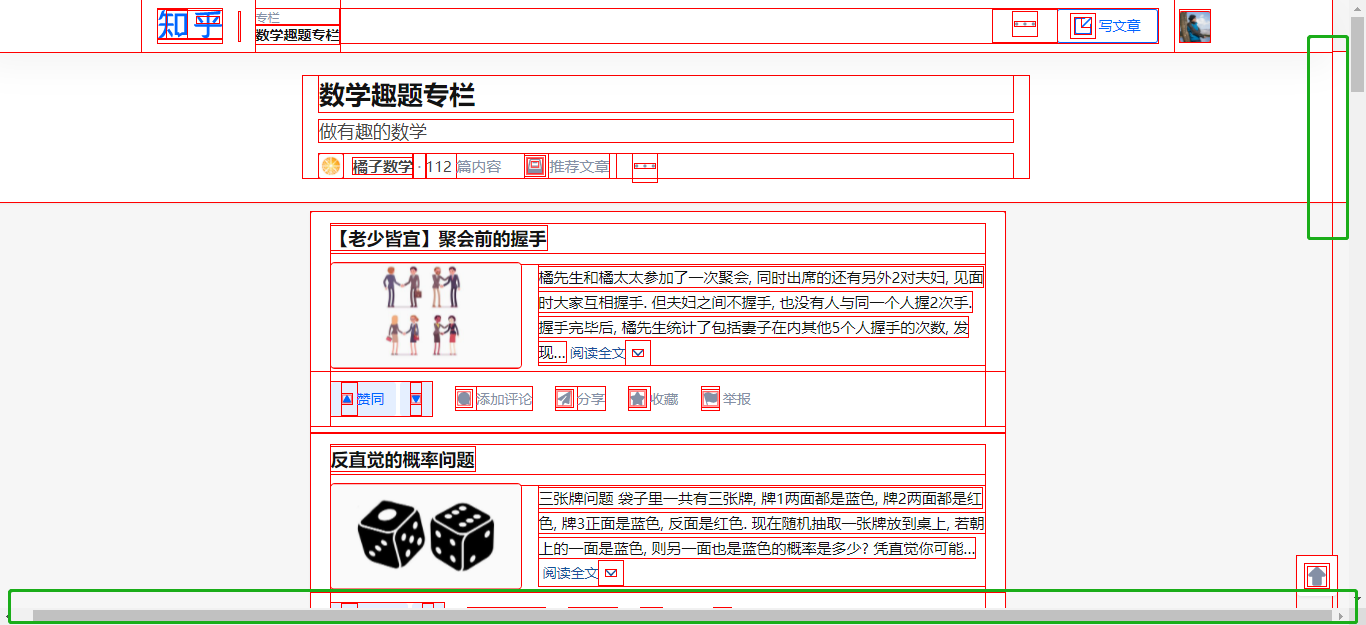 趣味数学题 - 橘子数学社区 - 趣题挑战 原本有这个问题,之后被我解决了。一开始的解决方法比较笨,就是用 Chrome 的开发者工具,一个一个检查元素,看看是哪个元素溢出了。