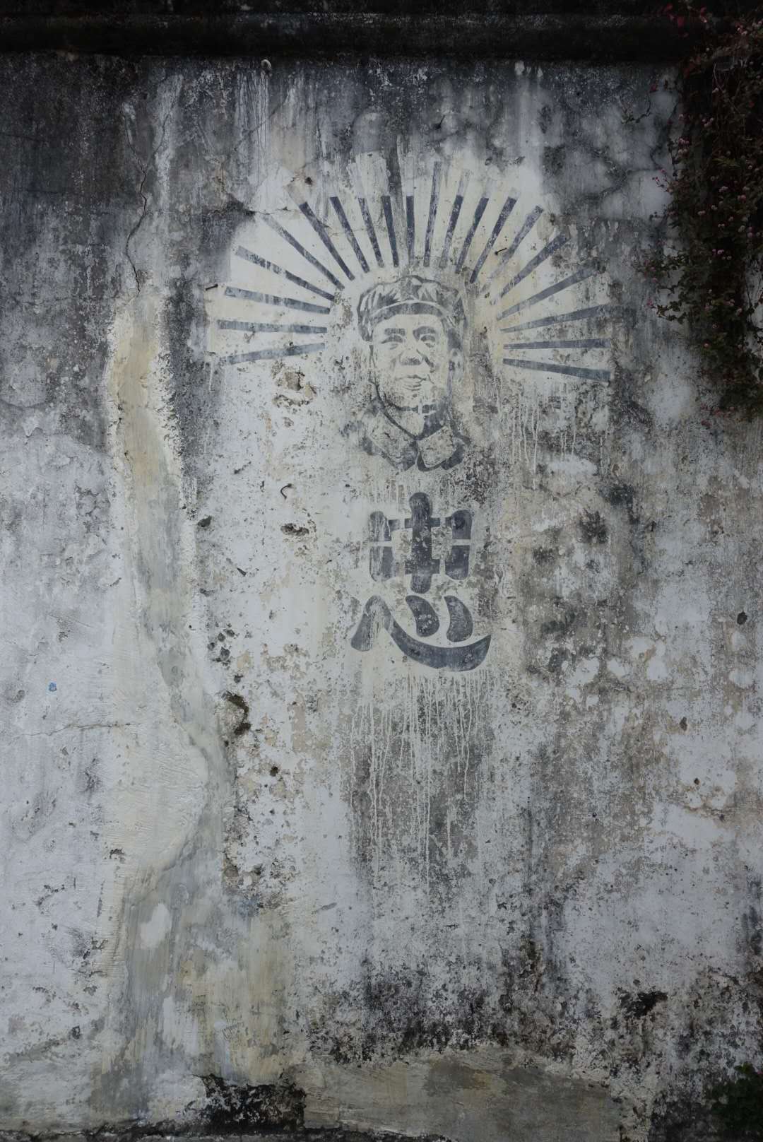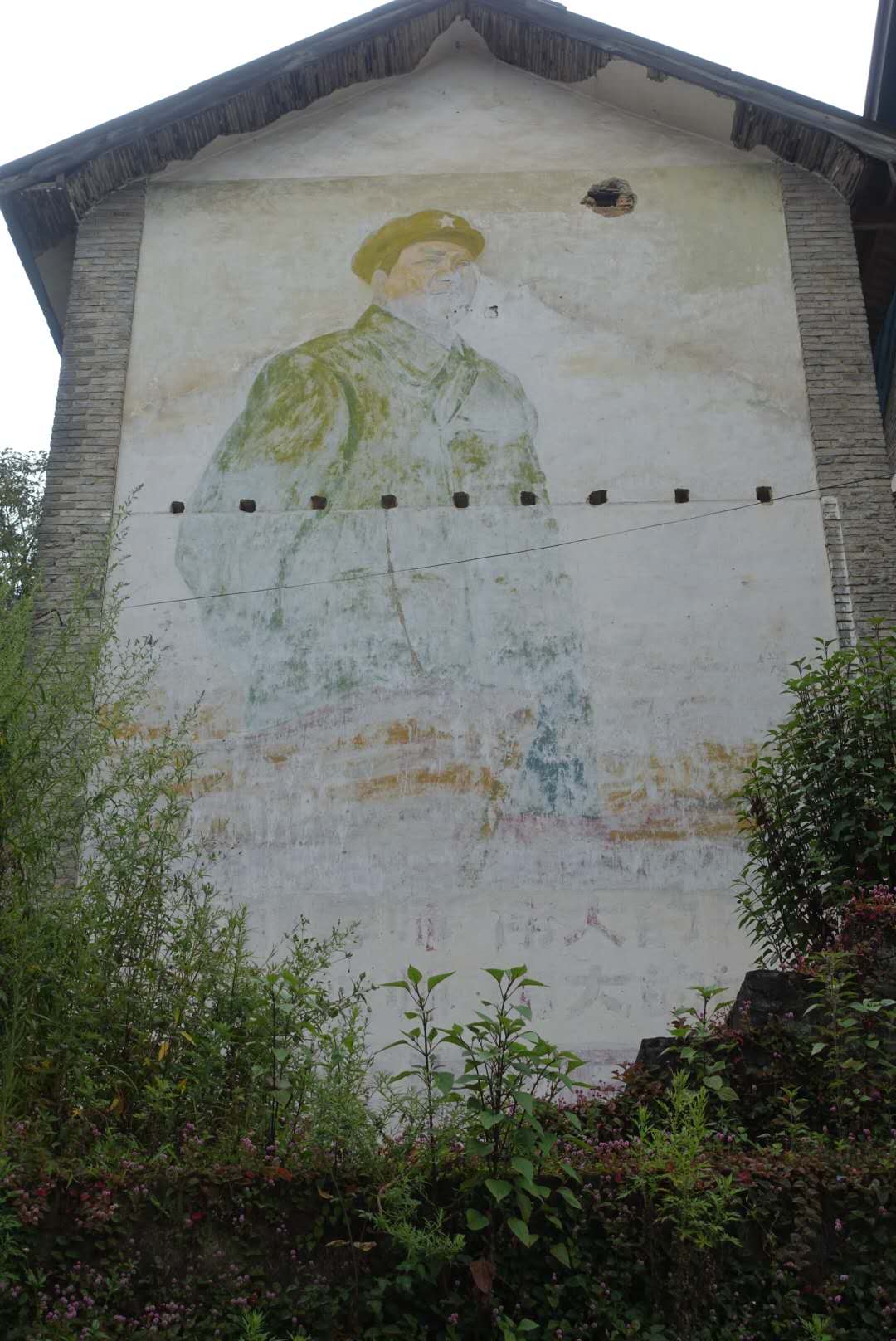 比较幸运的是,废城知子罗差不多还保留着当初的原貌。它又被称作记忆之城。记忆中的标语,记忆中毛主席的画像,记忆中六七十年代的小城模样。曾经的县图书馆现在被改成了「怒族博物馆」,我们去的时候在修建,还没有开放。我们在「怒江博物馆」前的广场上遇到的小柯。