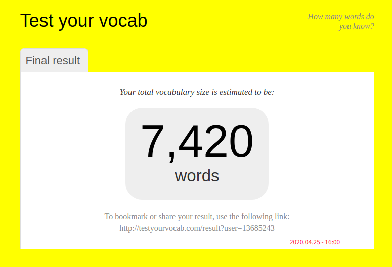 在词汇量方面,经过测试,7500 左右,比去年的测试稍有长进。在单词积累方面,目前的方法主要是通过欧路词典查词,然后每天复习。我在纯粹的单词记忆上并不擅长,已经不再死记硬背了,反倒是通过阅读,自己查词,印象更深,但关键还是要时常复习。
